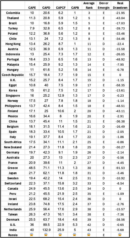 - Page 5 of this report shows USA to be near the most expensive sharemarket in the world and Page 4 shows that in the past, when the CAPE ratio has been over 35 (which it currently is), the forward returns (from 1 year to 10 years) have been negative.
