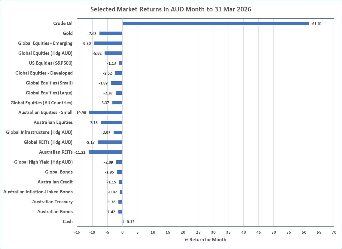 usually bad for share, property, and bond markets and unsurprisingly, all declined substantially during March. MSCI World was down almost