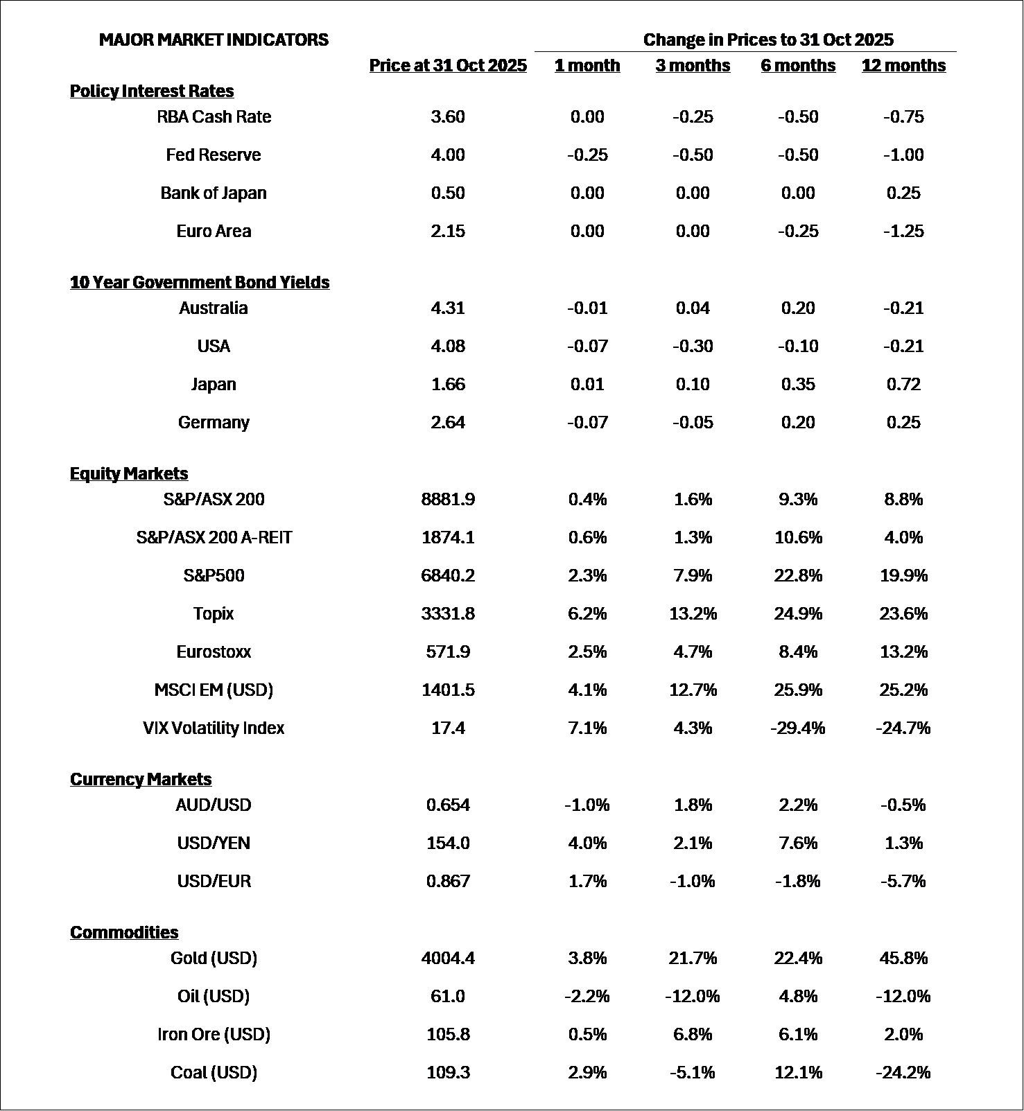 - Global sharemarkets continued their strong momentum thanks to continued Artificial Intelligence capital expenditure which is also responsible for most USA economic growth.